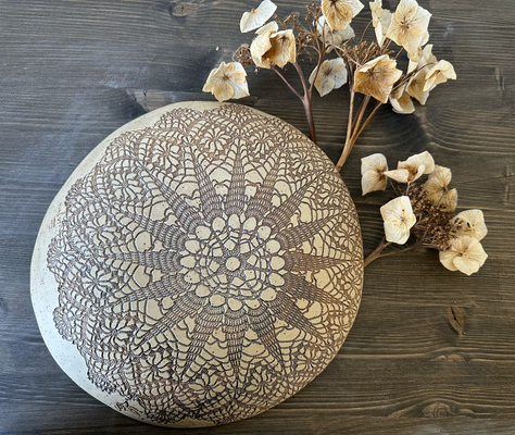 Grosse Schüssel und Schnecken rechts und links aus weissem Ton handgeformt, hochgebrannt bei 1220 Grad, wasserdicht. Sie ist durch den Hochbrand spülmaschinengeeignet. Kann für Salat, Obst oder als 🍾-Kühler benutzt werden.